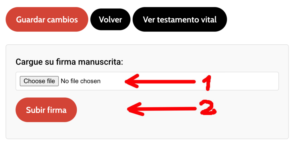 Cuando aparezca el mensaje «Firma cargada correctamente», su testamento vital estará actualizado.
